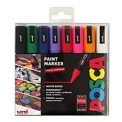 PERFECT PAINT FLOW - MITSUBISHI PENCIL has developed a unique valve mechanism that guarantees a perfect seal for the marker and conserves the paint over time. The same mechanism is used to prime the POSCA for use and to re-saturate the tip as often as necessary during creation. NON TOXIC - Water based paint is permanent, and bleed proof. Combines the accuracy of a line with the quality of paint. MULTI SURFACE USE - Can be used on tracing paper, photo paper, card stock, card board, clay, stone, rocks, cement, wood, metal, fabrics, plastics, glass, leather, and even more surfaces. PREMIUM PAINT - Very rich in pigments, POSCA paint provides results of incomparable density. Its unique water-based formulation delivers bright, matte, opaque colours that withstand the passage of time. ULTRA HARD WEARING TIP - The very high quality of the materials used guarantees a stroke that is always perfectly smooth. The line is regular, the action is unique and the pleasure of creating with POSCA is unparalleled. COLOURS MAY VARY - Subject to availability.