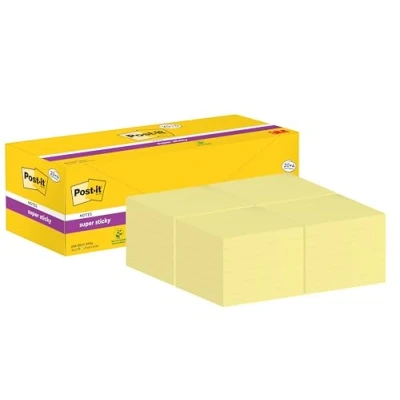Post-it Super Sticky Notes are designed to hold stronger and last longer, offering double the sticking power compared to original Post-it Notes. These notes are super strong, versatile, and perfect for ensuring your messages stand out. With their vibrant Canary Yellow colour, they are ideal for making notes, leaving messages, or setting reminders. Whether you're working on a vertical surface or need something that adheres to challenging textures, these self-stick notes are perfectly equipped to meet your needs.