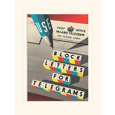 Postal Museum (Block Letters for Telegrams by Edgar Longman 1952) Mounted 30 x 40cm Print from The Art Group Ready to frame Ready to frame