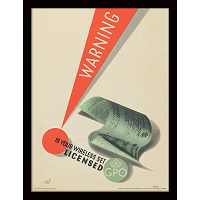 Postal Museum (Warning Is Your Wireless Set Licensed? By Hereford Studio 1937) Framed 30 x 40cm Print from The Art Group Officially Licensed Ready To Hang