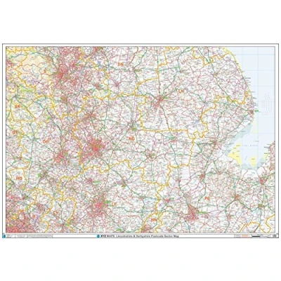This Lincolnshire & Derbyshire Sector Wall Map shows detailed Postcode Sector Boundaries (LN1 1, LN1 2) on a Comprehensive Background A0 Size - 1189mm x 841mm Plastic Coated waterproof / wipeable