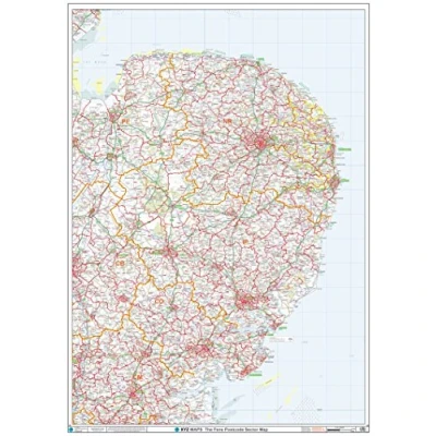 The Fens Sector Wall Map shows detailed Postcode Sector Boundaries (NR1 1, NR1 2) on a Comprehensive Background A0 Size - 1189mm x 841mm Plastic Coated waterproof / wipeable