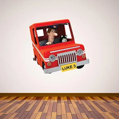 Postman Pat Personalised Name Number Plate Wall Sticker Decal Mural Kids Art (60cm Width x 55cm Height)