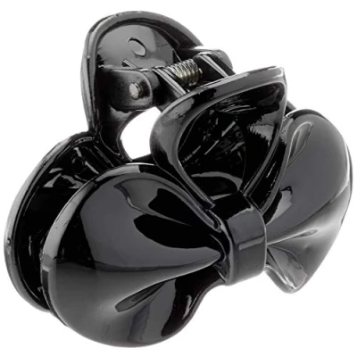 Girls Handmade Satin Ribbon Boutique Ponytail Hair Bow Clips Barrette (Black)