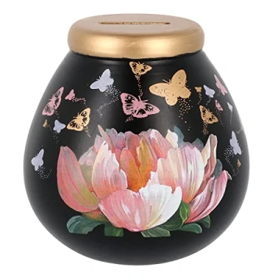 Pot of Dreams Ceramic Money Pot, Black, Flowers and Butterflies, one Size