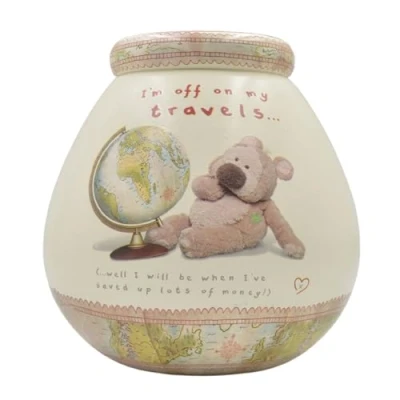 Pot of Dreams Hand Painted Teddy with Globe Save and Smash Handcrafted Ceramic Money Box Piggy Bank Perfect Decorative Gift Saving for Holidays & family Vaction