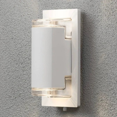 Sets great lighting accents in outdoor areas - Potenza outdoor wall light in white The snow-white painted Potenza outdoor wall light provides particularly energy-efficient lighting for outdoor areas, as the light has two GU10 sockets, each of which can be fitted with an LED or compact fluorescent bulb up to a maximum of 6 watts. The two light openings in the narrow aluminium body, each of which is closed with a clear acrylic disc, emit light equally upwards and downwards, so that not only the surroundings but also the façade are wonderfully illuminated.