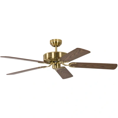 Potkuri 52 inch / 132 cm Reversible Ceiling Fan without Lights in Satin Brass with Oak Blades and Pull Cord