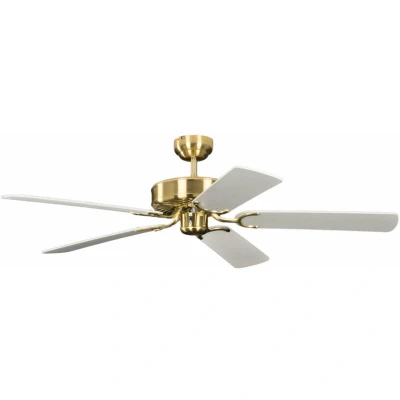 Potkuri 52 inch / 132 cm Reversible Ceiling Fan without Lights in Satin Brass with White Blades and Pull Cord