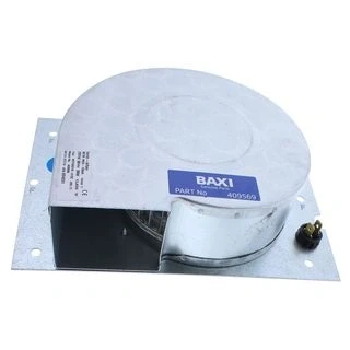 Potterton Sifan Fan Assembly (409569). The Potterton sifan fan assembly component is situated close to the fan section. The fan is the mechanism that forces fresh air into the combustion chamber, enabling the gas to be burned properly. After the combustion is finished, it also gets rid of the leftover burned gas. The boiler has safety measures in place to ensure that no gas can pass through to the main burner if the fan has stopped working. Comes on a large rectangular mounting plate. Square outlet. Genuine brand new Potterton product, covered by a Potterton manufacturer's guarantee.