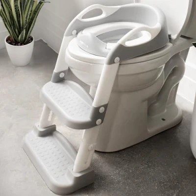 PERFECT POTTY TRAINING SOLUTION: This potty training ladder helps your child learn to use the adult toilet independently—with no step stool needed & no potty insert to clean afterwards. ADJUSTABLE HEIGHT makes this potty seat with ladder compatible with almost any toilet. Design fits most round & elongated seats. CLIMB WITH CONFIDENCE: Slip-resistant texture on the steps & sturdy side handles help kids climb up securely. Ladder feet feature grips to help keep ladder steady on the floor. FOLDS COMPACTLY for easy storing when not in use. The lightweight design makes it easy to move on & off the toilet. WIPES CLEAN: Smooth finish makes the entire potty ladder easy to wipe clean.