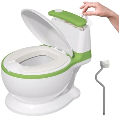 THE IDEAL POTTY TRAINING COMPANION:Are you tired of the struggles and stress that come with potty training your little one? Look no further!Our Realistic Toddler Potty Training Toilet seat is here to revolutionize the potty training experience for both you and your child. REALISTIC TODDLER POTTY TRAINING TOILET:Designed to mirror an adult toilet, this toddler potty toilet features a lifelike shape with an openable/closable lid, sparking curiosity and making potty training fun for toddlers. Its authentic exterior design helps children adapt to real potties while building confidence and independence. Perfect for baby potty beginners or transitioning from a toddler potty to an adult toilet! SAFETY AND COMFORT FIRST: We know that your child's safety and comfort are your top priorities. This toddler potty uses durable PP material tested to safely hold 50kg.The ergonomic backrest naturally guides the baby into the correct sitting posture while soft cushion protects delicate skin;The 4-point non-slip base of the potty stays securely in place and wipe-clean surfaces simplify hygiene - every potty time is made comfortable BUILT-IN WIPE HOLDER & PORTABLE DESIGN:Our potty training toilet features an ingenious built-in wipe holder with a paper withdrawable design, making it easy to access wipes whenever you need them.No more frantic searches when your little one's in a potty hurry! Our potty is lightweight, making it an ideal travel potty for trips.Whether you're on the go or at home, it's easy to carry, offering a convenient potty solution for your child anytime SPLASH-PROOF AND EASY TO CLEAN:Our potty training toilet seat features a raised splash guard that effectively prevents urine from splattering outside the potty The detachable bowl,smooth inner walls and included toilet brush make cleaning a breez ,ensuring no cleaning dead spots. Our portable potty's humanized design makes it the ideal choice for quick cleanups at home. GREAT POTTY TRAINING SOLUTION: Help toddlers 1-6 years old master toilet skills with this gender-neutral toddler potty training toilet.Available in stylish grey, mint green or blush pink to match your child's personality. The realistic design grows with your child until school age. It's not just a toddler potty, it's a essential tool to help your child build good habits step by step and grow more independent and confident