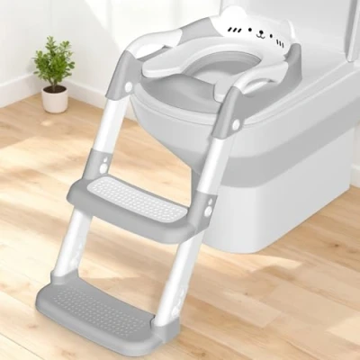 Potty Training Toilet Seat Toddler with Step Kids Toilets Steps for Toddlers Child Baby Boy Girl Anti Splash Soft Cushion Handle Adjustable Ladder in Bathroom, Grey