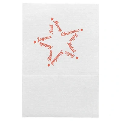 Napkins with ECOLABEL certification, made of cellulose in white Special pre-folded napkins for dispensers. Closed napkin measurements: 8.5 x 12 cm, with fun star design with red text The material of the product also has the following features: recyclable, single use.