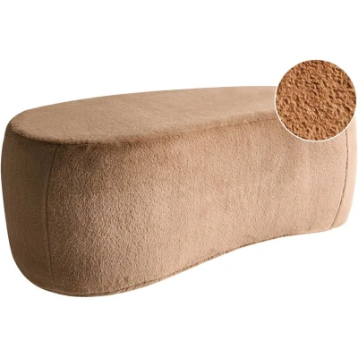 General description This beautifully curved pouffe is a perfect addition to your home. Upholstered in a soft-to-the-touch, durable faux rabbit fur, it adds comfort and style to your space. Whether at the end of a bed, in the hallway, or in the living room, it offers versatile use and a design that never goes out of style. Its timeless shape and solid frame make it a practical piece that fits into modern and Scandinavian interiors. Technical specifications Product Type: Pouffe Style: Scandinavian General Color: Brown Shade: Light Brown Main Material: Faux Fur Additional Material: Plywood Filling Material: Foam Material Composition: 100% Polyester Shape: Irregular Pattern: Solid Seat Foam Density: 28 kg/m3 Dimensions: Depth: 56 cm, Width: 115 cm, Height: 43 cm, Seating Surface: 115x50 cm Weight: 9 kg Weight Capacity: 150 kg Usage Very Comfortable Perfect for Both a Bedroom and a Living Room Minimalistic, Scandinavian Style Stable and Durable Construction Multifunctional Maintenance tips