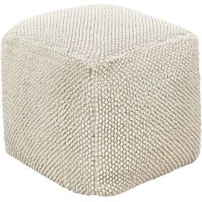 Pouffe Ottoman Footstool Square Textured Sold Pattern Beige Joara