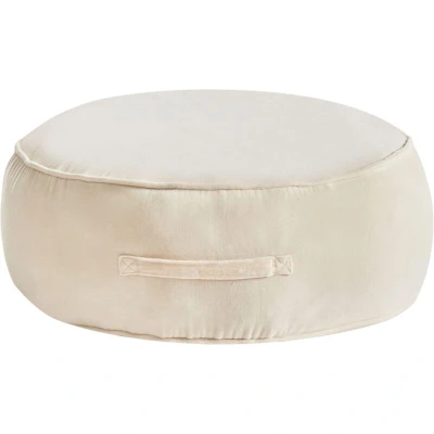 Stylish Round Ottoman with Handle for Living Room. Bring a touch of elegance to your living room or bedroom with this chic round pouffe, upholstered in soft and durable velvet. The soft colour adds style and a practical handle makes it easy to move around, while its lightweight design ensures versatility. It works perfectly as an extra seat, comfy footstool, or stylish accent piece. Details: Product Type: Pouffe General Color: Beige Shade: Light Beige Material Type: Fabric Main Material: Velvet Filling Material: Cotton Material Composition: 100% Cotton Shape: Round Pattern: Solid Storage: No Dimensions: Depth: 60 cm Width: 60 cm Height: 25 cm Seating Surface: 60x60 cm Weight: 8 kg Weight Capacity: 120 kg Offer Includes: 1 x Pouffe Key Features: Cosy and Comfy, Chic Look, High-Quality Materials, Unique Handmade Piece, Lightweight and Easy to Move Around, Multifunctional Assembly Information: Does Not Require Assembly Additional Information: Please keep in mind that velvet fabric can
