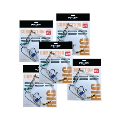 HOOK CONFIGURATION: Features a Aberdeen hook at the end and a circle hook in the pennel setup for superior bait holding capability PREMIUM COMPONENTS: Includes 80lb main body line, 50lb hook link/snood line, and high-strength swivels (blue pulley 100lb, metallic green 225lb) COMPLETE RIG SET: Pack contains 5 professionally assembled pulley pennel rigs, perfect for targeting large fish species VERSATILE DESIGN: Each rig comes with 3 transparent beads, weight clip, and bait snap clip for enhanced performance and adaptability SIZE OPTIONS: Available in hook sizes 2/0 and 3/0, suitable for various large fish targeting scenarios