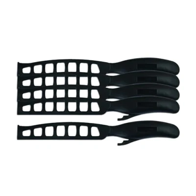 5 x 175mm long paint stirrers. Cut out feature in shaft allows paint to be stirred effectively. Side hook allows upright storing, avoiding messy workbenches. Black plastic. Easy to clean.