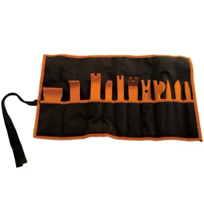 Set comprises: wide, pull and narrow-type removers; general handy remover Panel remover; clip panel type removers: upholstery, angled, fork-tip (flat), sharp-tip (flat), blunt-tip (flat), clip panel Special plastic for minimal damage Supplied in handy wallet that can be rolled up for easy storage or hung on workshop wall Smaller set of 5 trim tools available, please see Power-TEC Part No 91269