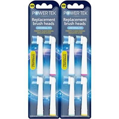 Power TEK 8 Pack High Quality Oral B Compatible Replacement Brush Heads by Wisdom