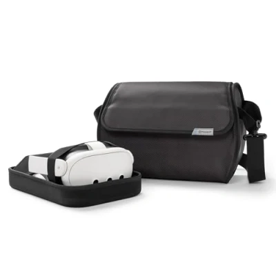 Travel Ready - Conveniently store and bring your Meta Quest 3 headset and controllers wherever you go* Secure Fit – Molded storage tray and elastic straps keep the headset and controllers in place Adjustable Shoulder Strap – Can be worn crossbody style or on the shoulder and the strap is removeable Zipper Closure – Flap design with zippers to help keep out dust and dirt Padded Pocket – Back panel pocket is padded to store cables, earbuds, or other small accessories Includes microfiber cleaning cloth and cleaning brush pen Officially licensed by Meta 2-Year Limited Warranty, Platforms: Meta Quest, ESRB Rating: Everyone