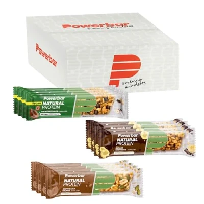 WHETHER FRUITY, SALTY OR SWEET: the Natural Protein Bar is a practical snack for in between meals and a delicious reward after training DELICIOUS NATURAL INGREDIENTS such as soya, peanuts and almonds (depending on the flavour) are packed into our vegan, low-sugar protein bar POWERED WITH 30% PROTEIN: the vegan bar provides your muscles with valuable plant-based protein DEVELOPED IN GERMANY, this vegan protein bar stands for proven Powerbar quality EXTRA PROTEIN IN EVERY MIX BOX:with 4 bars of each flavour in one box, offering a tasty variety and plenty of snacks for all your needs
