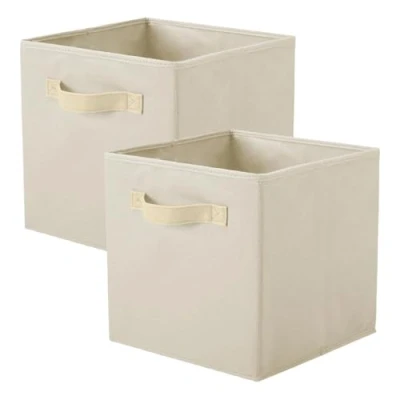 PowerKing Storage Box, 2 Foldable Cubes Box Made of Fabric in Cube Shape Beige