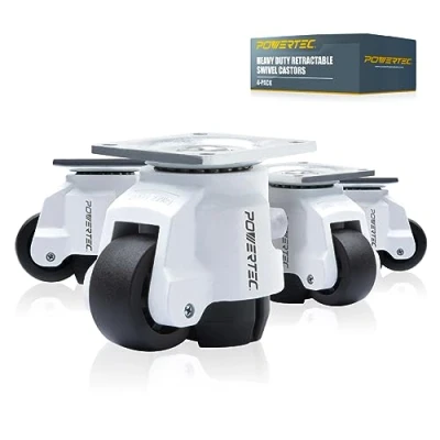 INCLUDES: (4) 2” Leveling Casters APPLICATIONS: Retractable leveling casters are durable and versatile, suitable for a wide range of uses including heavy workbenches, kitchen islands, machine equipment, medical equipment, and communications equipment FEATURES: Casters are equipped with a ratchet arm for easy height adjustment. This ergonomic design has been engineered to enhance efficiency and reduce effort when adjusting the height of the retractable leveling machine caster. Plus, the leveling feet on the casters make sure precision instruments stay stable and secure 360-DEGREE ROTATION: Swivel caster wheels can rotate 360 degrees, allowing smooth and seamless movement to make it easy for you to move the equipment in any direction PREMIUM BUILD: These 2” casters can support up to 1750 lbs and have retractable wheels. Each heavy duty caster is made of steel frame and PP wheel. The materials are durable and wear-resistant, making the casters long-lasting, Weight: 6.30962993844 pounds, Manufacturer: POWERTEC