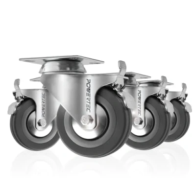 INCLUDES: (4) Double Locking Swivel Caster Wheels with Gray Rubber Tire DOUBLE LOCKING: The wheel has simultaneous dual braking action that locks the wheel and swivel and prevent your workbench, furniture, chair or device from moving 360 DEGREE ROTATION: Multi-directional caster provides you with optimal maneuverability, allowing you to transport your object in the direction you desire with minimal effort and noise PREMIUM: Each heavy duty caster is made with a solid plated steel and handles a 160lb capacity; ball bearings ensure smooth turning and swivel action VERSATILE: Caster possesses a universal design that can not only be used for a wide range of furniture items, but workbenches, dollies, carts, workshop machinery, equipment stands and more outdoor applications Please note, these are utility grade casters, and the wheels are not suitable for inside home use., Manufacturer: POWERTEC