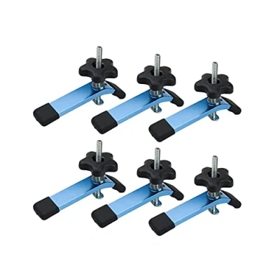 INCLUDES: (6) Hold Down Clamps for T-tracks/T-slots; (6) 5/16-Inch-18 thread 3-1/2-Inch long T bolts; (6) Washers; (6) 5/16-Inch-18 thread 5-star knobs FUNCTION: Provides exceptional clamping action for your universal t-track system configurations and assemblies FEATURES: Ergonomically designed 5 star knobs, non-marring clamping pads, and a high tension clamping capacity DESIGN: Made from premium grade anodized aluminum with a lever shaped profile ensuring optimal leverage in addition to work piece accessibility VERSATILITY: Hold Down Clamp Set is ideal for work holding, positioning, and fixturing for many woodworking or metalworking applications, including routers, drill presses, CNC, table saws, jigs, panels, vertical mills and more PLEASE NOTE: Our t-bolts, both 1/4"-20 and 5/16"- 18 have a head size of 17/32" wide x 13/16" long and 7/64" thick (Please see drawing). They are designed to fit Universal T-track or larger and will not fit 1/4" or Mini T-track. Please check the size to verify that they will work for your application., Manufacturer: POWERTEC