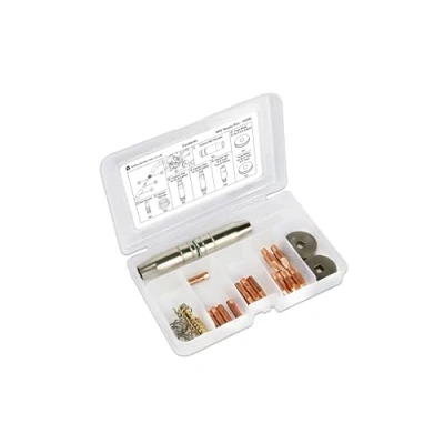 Consumable accessory kit to suit the Power-TEC MIG Welder - 170A, Part No. 92708. Kit contains: 2x Replacement conical MIG shrouds. 5x Contact tips, 0.6mm diameter. 5x Contact tips 0.8mm. 5x Contact tips, 1.0mm. 1x Gas nozzle. 5x Shroud springs. 1x Feed wheel, 0.6 – 0.8mm diameter. 1x Feed wheel 1.0mm.