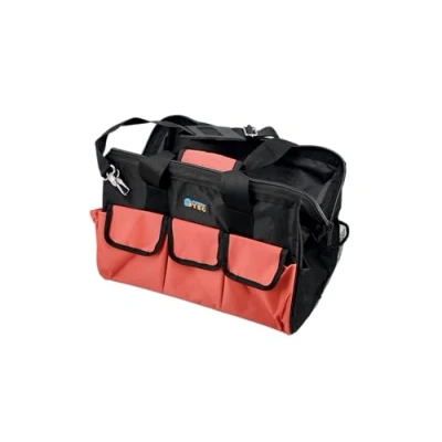 Heavy duty tool bag, 18" long with reinforced, wide opening top for easy access for tools. Hard base with 4 bottom protectors for durability; manufactured from 1680D nylon providing high tensile strength & water resistant. Organises tools for fast access with 10 external pockets & 8 internal pockets, 2 carrying handles one shoulder strap. Standard carrying handles, with removable shoulder strap for ease of carrying. Ideal for storing & transporting bodyshop tools & equipment.