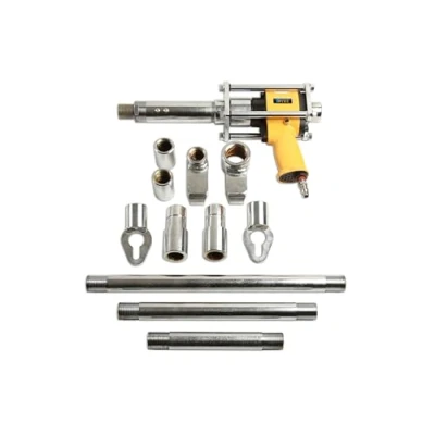 Easy & quick to both assemble & use. One-person operation. Connects to standard workshop air lines. Accessories included: 3 x Extension Bars (200mm, 300mm, 400mm). 2x female threaded connection sleeves, 2x adaptors, 2x chain adaptors, 1x inner force screw foot & 1x outer force screw foot. Noise level: 90dB. Air consumption: 200 L/min (approx.). Working pressure: 0.8 Mpa. Air inlet: 1/4" BSP. Supplied in a robust plastic case with strong over-centre latches.