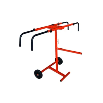 A fully adjustable bumper support frame suitable for use during repair, preparation, painting & drying. Dimensions: 810mm (w) x 1220mm (l) x 870mm (h). Working height adjustable from 870 to 1350mm, length adjustable from 1220 to 1800mm. Features curved frame ends to fit inside curved bumper ends. 2x 180mm diameter wheels for easy movement around the workshop.
