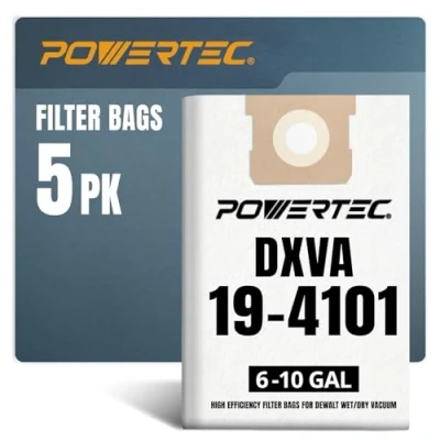 INCLUDES: (3) High Efficiency Dust Filter Bags QUALITY MATERIAL: Made with white polypropylene for heavy duty use and are specifically designed for dry pick-up only - including dust, dirt and debris COMPATIBILITY: Works with DeWalt models DXV06P, DXV09P, DXV10P,DXV10S 100% DISPOSABLE: Filter bags can be easily be disposed of when the job is done or when bag is completely full International products have separate terms, are sold from abroad and may differ from local products, including fit, age ratings, and language of product, labeling or instructions., Manufacturer: POWERTEC