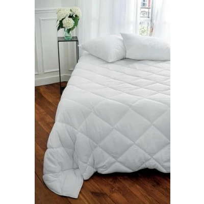 Composition: 100% polyester microfibre. Filling: siliconised hollows for a weight of 400 g/m². 100% polyester microfibre cover with checkered quilting finish with frame. OEKO TEX / Stopflam. Machine washable Can be tumble dried Standard NF EN ISO 12952/1 and 2 Microfiber is the lightest and finest synthetic fiber available for duvet filling. These microfibers are very fine and are woven and tightly woven so that there is no hollow space giving an extra soft and extremely comfortable feel
