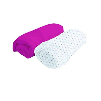 Poyetmotte 2 Piece Fitted Sheets, 140 cm, Framboise/Flowers, One Size