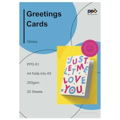 PPD 20 Inkjet Printable Greeting Cards A4 Pre Scored to A5 260gsm Heavyweight Gloss 51