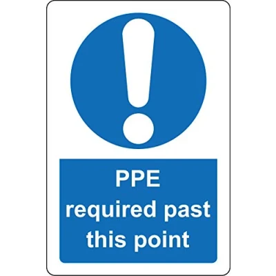 PPE required past this point - personal protective equipment safety sign 1.2mm Rigid plastic 300mm x 200mm Digitally printed for extra durability Drill and screw in position or use double sided tape to mount onto suitable surface.