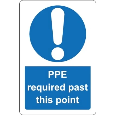 PPE required past this point - personal protective equipment safety sign 1.2mm Rigid plastic 300mm x 200mm Digitally printed for extra durability Drill and screw in position or use double sided tape to mount onto suitable surface.
