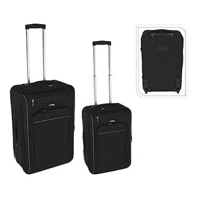 SET 2 BLACK TRAVEL Suitcases. POLYESTER MATERIAL. 4 ALUMINIUM TUBE SWING WHEELS WITH PP handle. DOUBLE FRONT POCKET WITH ZIPpers. DIMENSIONS: 36x24x53cm 44x26x63cm (width/depth/height), Weight: 5.51155655 Pounds, Manufacturer: PR WORLD