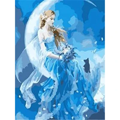 Pracht Creatives Hobby 6037 40231 Diamond, Woman in The Moon and Accessories, Dimensions Approx. 35 x 25 cm, Glitter Stone Painting Set for Children Ages 5 Over, Blue White, ca. 30 40 cm