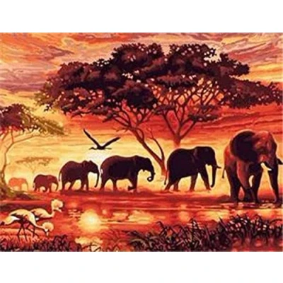 Creative set for creating a diamond painting picture with an image template, assorted colours, a bowl, a pen and a small square wax plate Motif: elephants in the savannah - elephant herd at sunrise in the grass quilt, picture size: approx. 35 x 25 cm The complete picture is self-adhesive, so that the coloured facet stones can be applied to the canvas without additional glue Once finished, the artwork can be framed or stretched over a stretcher frame to decorate walls and give as a gift Diamond painting promotes hand-eye coordination, concentration, patience and creativity in children and adults and contributes to relaxation and stress relief, Manufacturer: Pracht Creatives Hobby GmbH