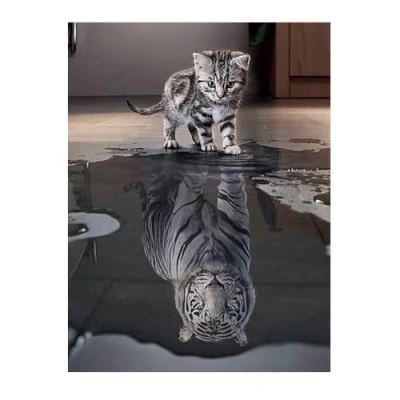 Creative set for designing a diamond painting picture with a picture template, coloured assorted stones, a bowl, a pen and a small square wax plate Motif: cat and tiger, image size: approx. 30 x 40 cm The complete picture is self-adhesive, so that the coloured facet stones can be applied to the canvas analogously to the colour legend without additional glue The artwork is already on a stretcher frame and can be used to decorate walls as well as as a gift after completion Diamond painting promotes hand-eye coordination, concentration, patience and creativity in children and adults and contributes to relaxation and stress relief, Manufacturer: Pracht Creatives Hobby