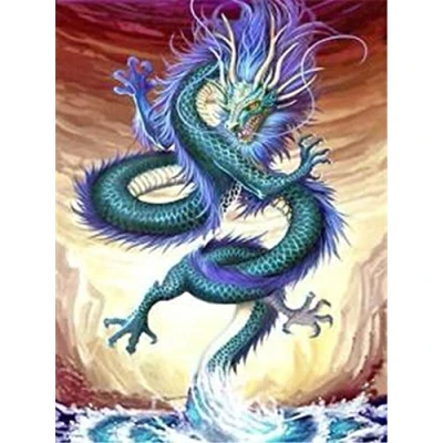 Creative set for designing a diamond painting picture with a picture template, coloured assorted stones, a bowl, a pen and a small square wax plate Motif: dragon - mystical snake creature in green-blue with purple fur rising from a river. Picture size: approx. 25 x 35 cm The complete picture is self-adhesive, so that the coloured facet stones can be applied to the canvas analogously to the colour legend without additional glue Once completed, the artwork can be framed or stretched on a stretcher frame and used to decorate walls as well as a gift Diamond painting promotes hand-eye coordination, concentration, patience and creativity in children and adults and contributes to relaxation and stress relief, Manufacturer: Pracht Creatives Hobby GmbH