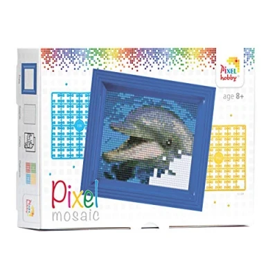 Gift set for creating a mosaic picture with small pixel stones, easy plug-in system, no ironing or gluing Design: dolphin Contents: 1 rectangular base plate (approx. 10 x 12 cm), 1 template, 1 plastic tweezers, 1 picture frame and the corresponding number of pixel plates The pixel squares are made from 100% recyclable bioplastic and are approx. 2 x 2 mm Ideal as a gift to creative people or for self-design, suitable for children aged 8 and up, promotes concentration and fine motor skills, Manufacturer: Pracht Creatives Hobby GmbH