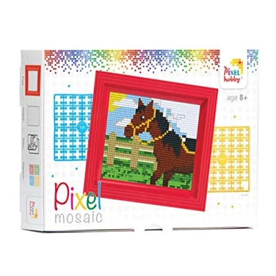 Gift set for creating a pixel image with a frame Motif: horse Contents: 1 rectangular base plate (approx. 10 x 12 cm), 1 template, 1 plastic tweezers, 1 picture frame and the corresponding number of pixel plates Ideal as a gift for children, boys and girls Suitable for children over 8 years, Manufacturer: Pracht Creatives Hobby GmbH