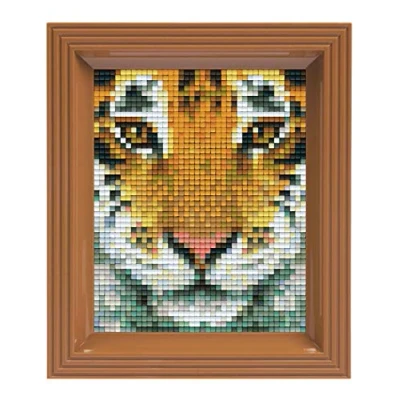 Gift set for creating a mosaic picture with small pixel stones, easy plug-in system, no ironing or gluing Motif: tiger Contents: 1 rectangular base plate (approx. 10 x 12 cm), 1 template, 1 plastic tweezers, 1 picture frame and the corresponding number of pixel plates The pixel squares are made from 100% recyclable bioplastic and are approx. 2 x 2 mm Ideal as a gift to creative people or for self-design, suitable for children aged 8 and up, promotes concentration and fine motor skills, Manufacturer: Pracht Creatives Hobby
