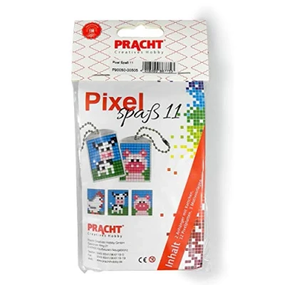 2 DIY charms with small pixel stones, easy plug-in system, no ironing or gluing Motifs: cow, pig, chicken Contents: 2 pendants with chain, 3 original size templates and 12 pixel plates The pixel squares are made from 100% recyclable bioplastic and are approx. 2 x 2 mm Great for children's birthday parties as a small gift or party bag, suitable for children aged 6 and up, promotes concentration and fine motor skills, Manufacturer: Pracht Creatives Hobby GmbH